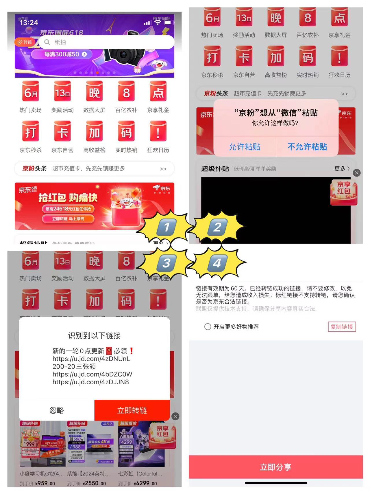 1、复制链接打开京粉。