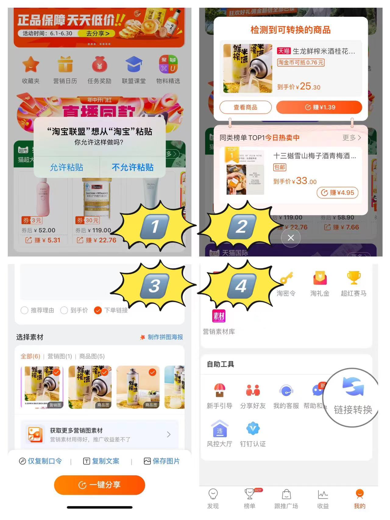 1、复制链接打开淘宝联盟,一般都会自动识别链接,点允许粘贴。