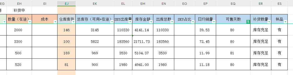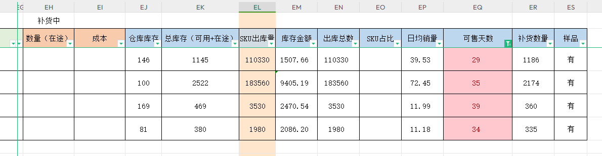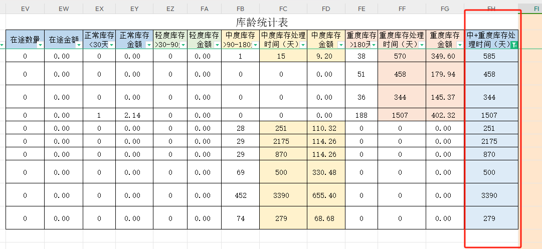 用表格里面的一些数据举个例子,我们一般都会着重处理中度库存和重度库存。
